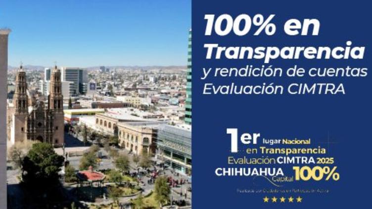 La organización Ciudadanos por Municipios Transparentes (CIMTRA), en su edición 2025, otorgó a Chihuahua Capital una calificación de 100% en transparencia y rendición de cuentas, reconocimiento que ratifica la confianza de la ciudadanía en un gobierno abierto y eficaz.
