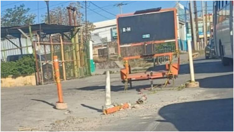 El letrero se quedó en la calle abandonado junto con unos conos, lo cuál no permite que el flujo del tráfico sea fluido, sobre todo a las horas en que suele haber muchos conductores por la salida de los niños de la escuela o cambios de turno en los trabajos.