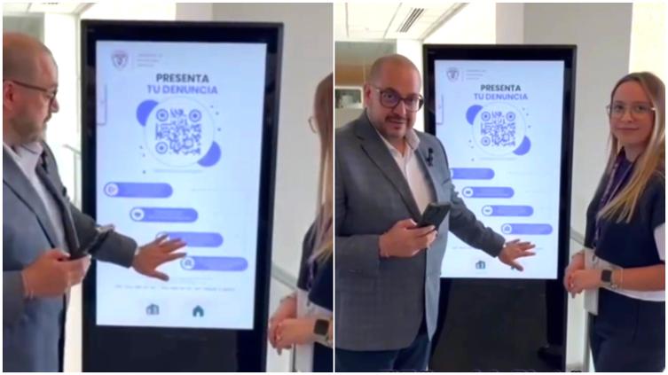 “A un clic sale tu código QR” en la parte superior de la pantalla del kiosco, “lo copias y te presenta el formulario por medio del cual puedes denunciar” desde tu celular, externó al mostrar un Formulario de Google.