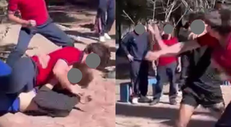 Circula un video en el que se observa a alumnos peleando en un parque de la ciudad, presumiblemente serían alumnos de las escuelas La Salle y Esfer.