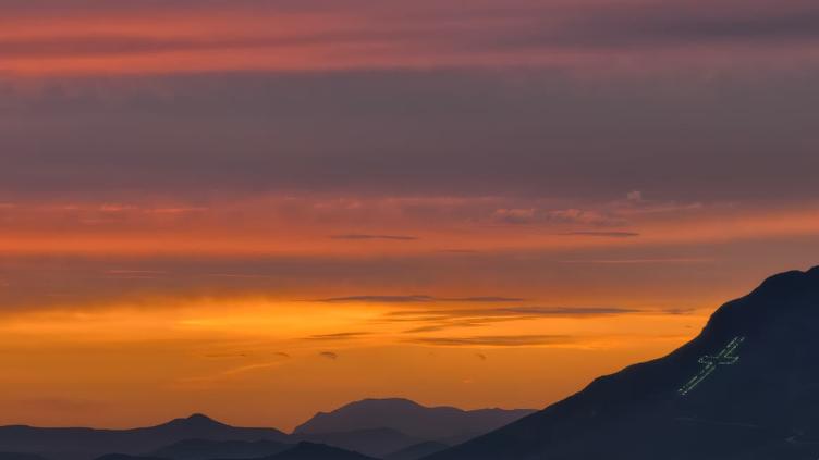 Si bien en las fotos se ve el Cerro Grande y un amplio panorama de la ciudad cubiertos de un cielo azul, en cuanto el Sol va saliendo, los tonos anaranjados, amarillos y grises se apoderan del horizonte.
