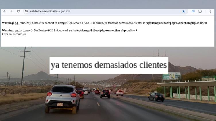 Cayó la página del Gobierno del Estado de Chihuahua dedicada al monitoreo de la calidad del aire debido a un excesivo tráfico en su sitio web.