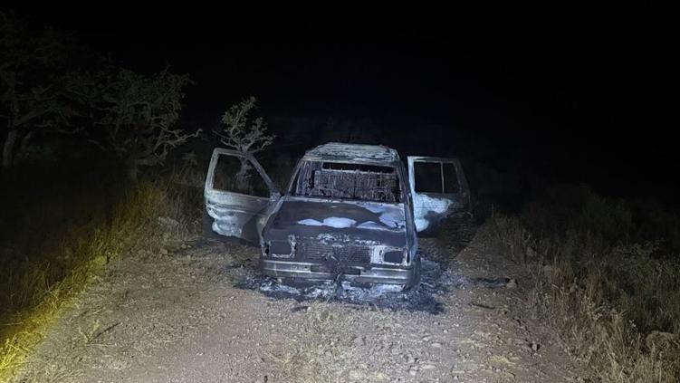 El primer cuerpo del joven Ricardo presentaba lesiones en la extremidad cefálica y el adulto Maclovio presentaba de igual forma heridas de arma de fuego en la cabeza, durante el peritaje se logró asegurar un vehículo Nissan Pathfinder modelo 1993; el cual fue localizado totalmente calcinado.