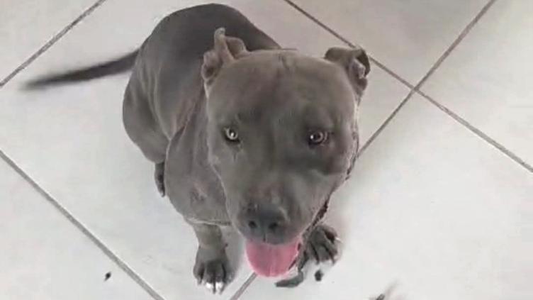 “Daysi” es una perrita mediana, es de raza pitbull blue, es de color grisaceo con un poco de blanco en sus patitas, es tranquila y no sabe andar solita en la calle, por lo que puede estar asustada.