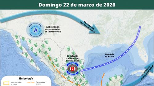 El pronóstico extendido y los mapas de predicción de Conagua muestran que el anticiclón en niveles medios de atmósfera permanecerá por lo menos hasta el martes 24 de marzo.