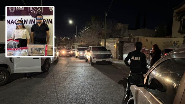Autoridades presentaron a una pareja detenida en un cateo en Quintas San Sebastián, en Chihuahua, vinculado a un homicidio reciente. En el operativo se aseguraron armas, cartuchos, presunta droga y tres vehículos, quedando todo a disposición de la Fiscalía.