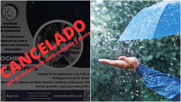 Es por esta razón, que la Sociedad Astronómica de Chihuahua dio a conocer que lamentablemente tendrán que cancelar la Noche de Telescopios que tenían planeada esta tarde en el Polideportivo Luis H. Álvarez.