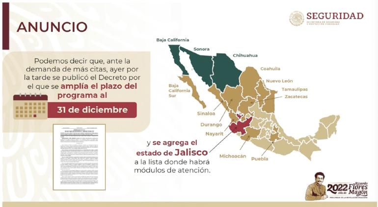 El mismo día que finalizaría el programa, las autoridades federales anunciaron que se amplía el plazo del programa hasta el final de este año y agregaron al estado de Jalisco donde se regularizan autos "chuecos".