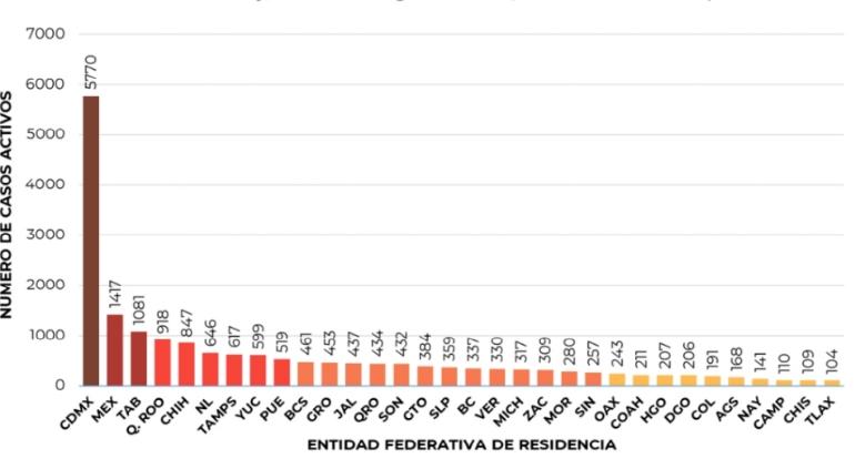 El estado de Chihuahua ocupa el noveo lugar en fallecimientos por coronavirus y el quinto respecto a casos activos, de acuerdo al reporte diario de la Secretaría de Salud del Gobierno Federal.