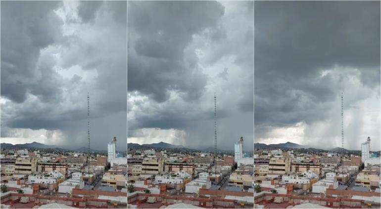 Sin embargo llamó la atención un video en donde apareció el avance de los chubascos sobre la zona urbana.