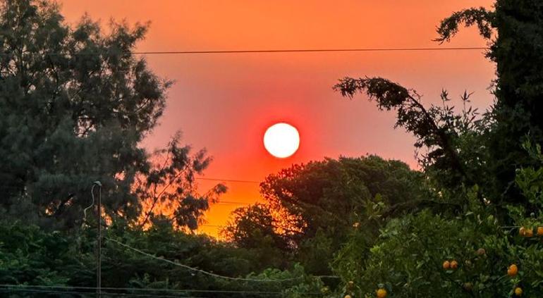 Se dice que el atardecer se “pinta” de rojo debido al calor y a las cenizas de los incendios que se están dando en la sierra y que el viento trae, causando que se mezclen con el polvo en el ambiente, chocando con la luz para teñir el cielo de rojo y naranja.