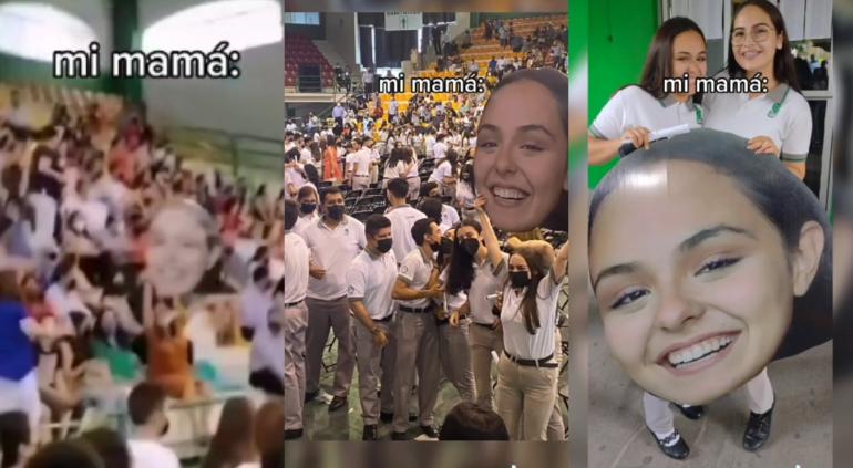 La mamá de la joven imprimió una foto gigante de la cara de la misma y la llevó al evento.