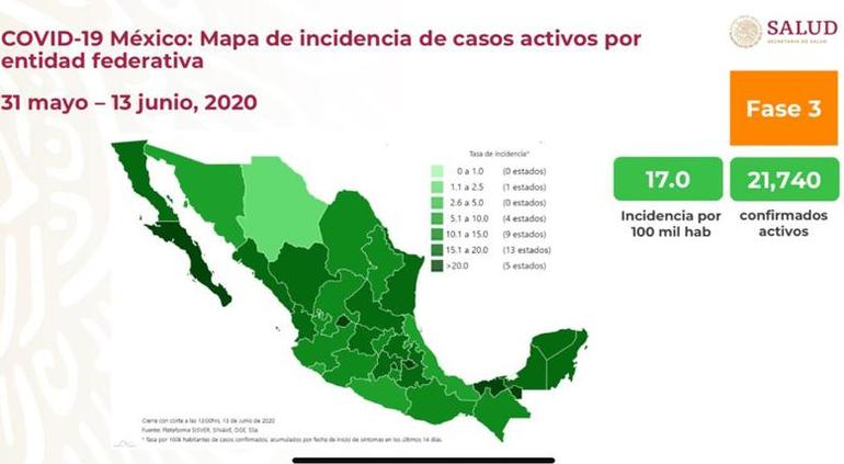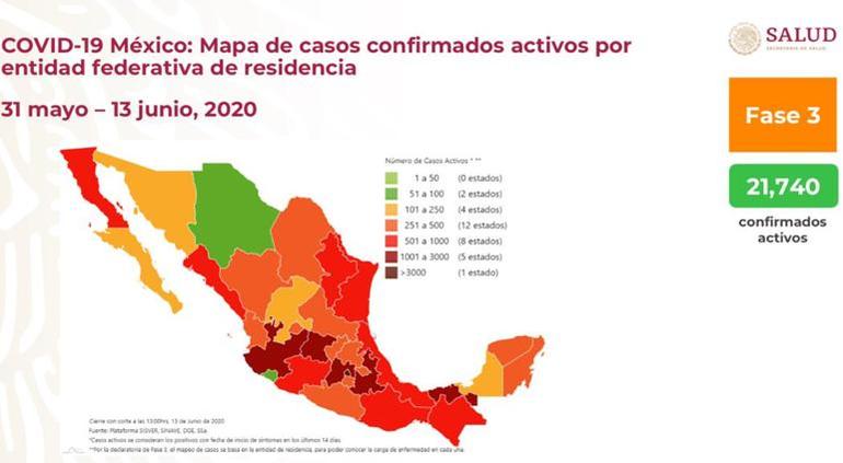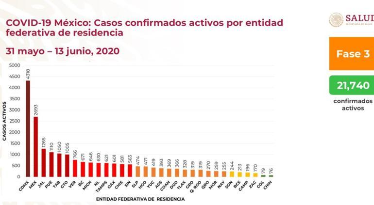 Los casos confirmados activos en el país son 21 mil 740 y en Chihuahua 76 de ellos, siendo una de las dos regiones con entre 51 y 100 casos, al igual que Colima.