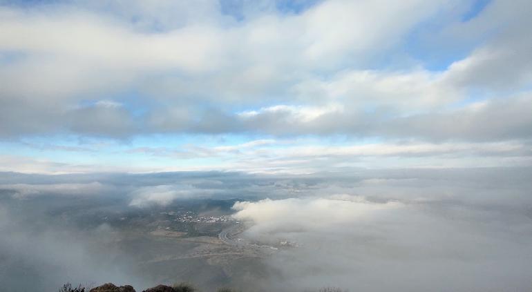 El senderista Ricardo Meza dio a conocer varias fotos de la madrugada y la salida del sol desde el Cerro Grande, mostrando que toda la ciudad estaba totalmente escondida entre la neblina desde ese punto.