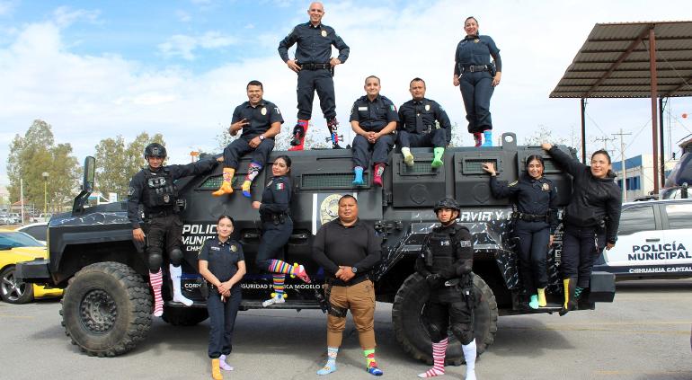 Con calcetines diferentes y una gran actitud, los policías y bomberos de Chihuahua decidieron conmemorar el Día Mundial del Síndrome Down y recordarle a las personas que deben tratar a todos por igual sin importar sus diferencias.