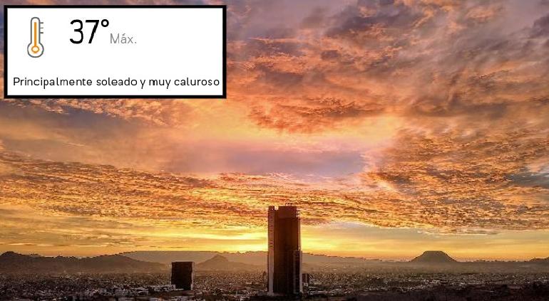 Para la tarde, se espera que la temperatura máxima sea de 37 grados centígrados, con un cielo principalmente soleado, con ambiente caluroso y ráfagas de viento de hasta 26 kilómetros por hora.