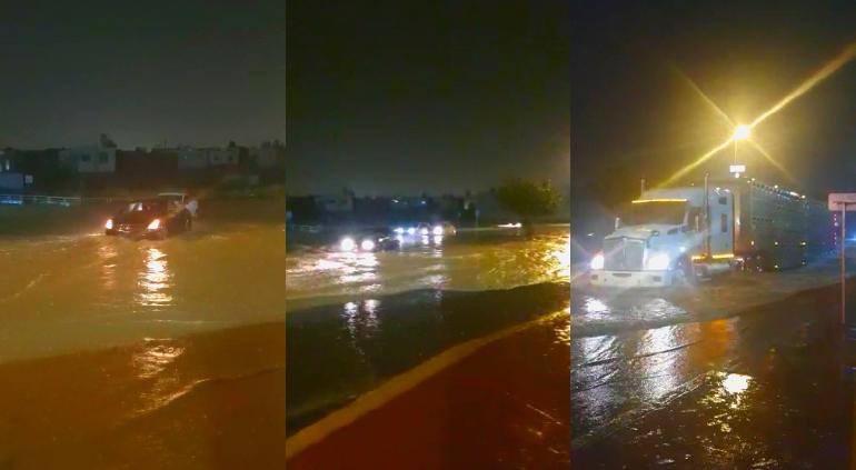 Los conductores de dicho tramo dieron a conocer varios videos en donde pueden verse como los autos pasan lentamente por las calles que están totalmente llenas de agua por las lluvias.