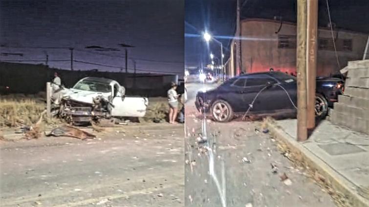 El choque fue entre dos vehículos Challengers, que chocaron y posteriormente, uno salió proyectado contra una barda.