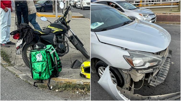 Un motociclista repartidor de comida rápida resultó lesionado tras verse involucrado en un accidente vial ocurrido en el cruce de la avenida Silvestre Terrazas y el Periférico de la Juventud.