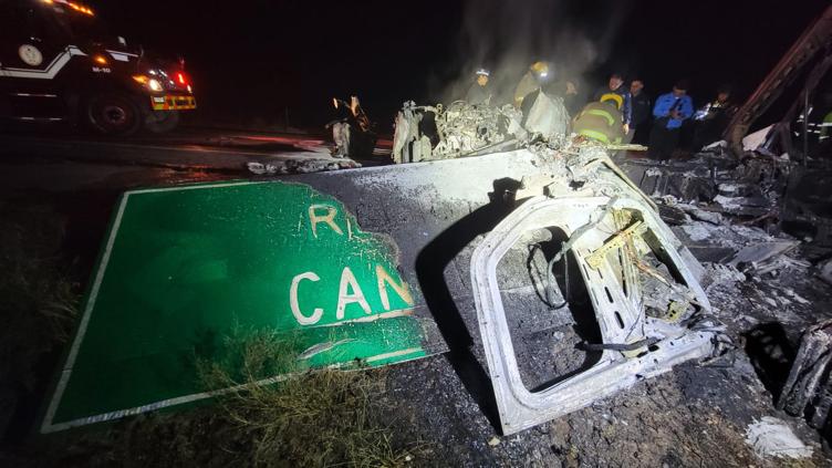 Esta madrugada se registró el incendio de un camión que transportaba cartón luego de que el conductor se impactó contra un poste que sostenía un señalamiento vial en la carretera de Ahumada a Ciudad Juárez. Una persona perdió la vida en el siniestro.