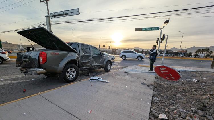 El incidente ocurrió cuando el joven conductor de una pickup Nissan Frontier de color gris oscuro cruzó la avenida Mariano Valenzuela para incorporarse a Teófilo Borunda sin percatarse de una camioneta Toyota RAV4 que circulaba de este a oeste por dicha avenida. La falta de visibilidad o atención provocó la colisión.