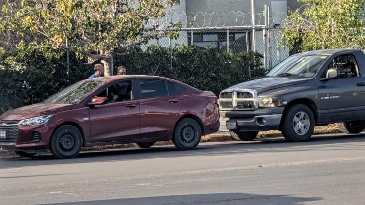 El conductor de una pick up Ram y un auto Malibu protagonizaron un choque en la calle Miguel Cervantes de Saavedra, en el Complejo Industrial Chihuahua, lo que dejó sólo daños materiales.
