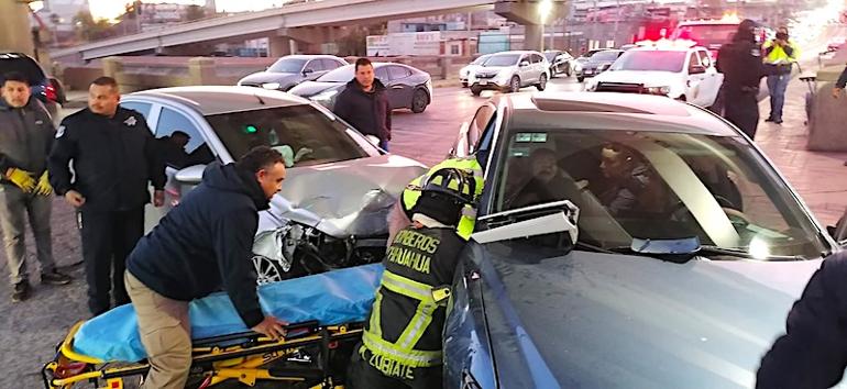 Bomberos y paramédicos auxiliaron al acompañante atrapado y lo sacaron del vehículo. Personal de emergencia le brindó atención inicial en el lugar y, posteriormente, lo trasladaron a un hospital para su atención médica y valoración especializada.