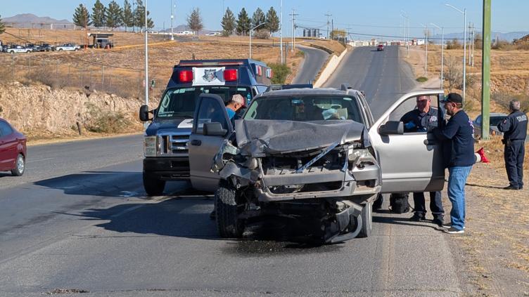 En la carretera Aldama-Chihuahua, cerca del C4, chocaron una Dodge Nitro y una Ford Sport Trac; dos mujeres resultaron con lesiones leves una es policía municipal.