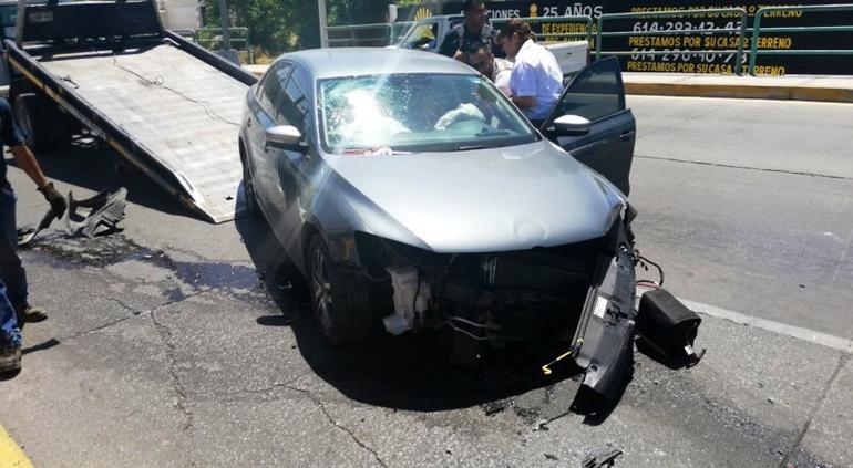 Elementos de la Policía Vial arribaron a la avenida de la Cantera cruce con la avenida Río de Janeiro donde al bajar el puente una conductora del vehículo Jetta Volkswagen de color gris impactó contra un muro de contención.
