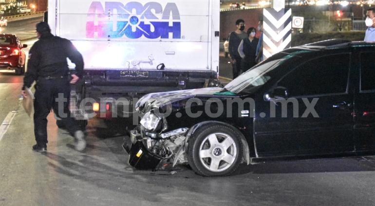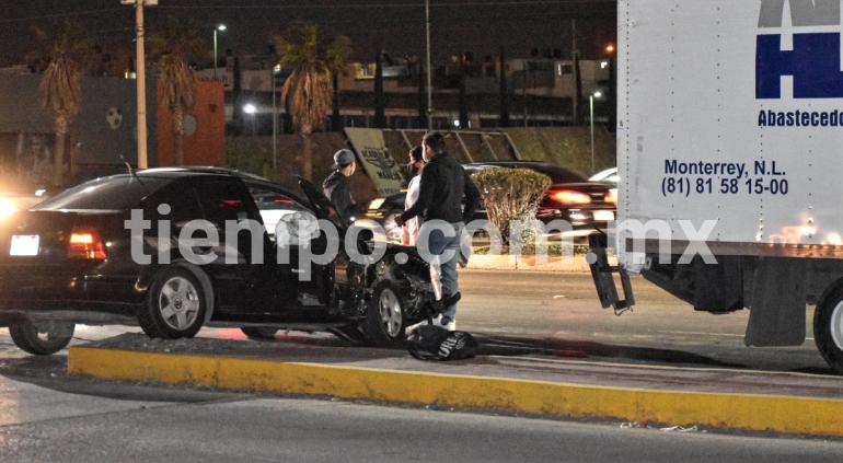 El accidente ocurrió en los carriles de norte a sur sobre el periférico De la Juventud, donde el conductor de un vehículo Jetta de color negro al parecer circulaba a exceso de velocidad cuando en el tramo entre la Juan Escutia y Francisco Villa, se impactó contra un camión de carga.
