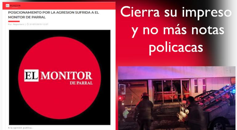 El Monitor de Parral anunció oficialmente que cerrará su periódico impreso y no publicará noticias sobre seguridad, luego del ataque anoche a sus instalaciones con bombas molotov.