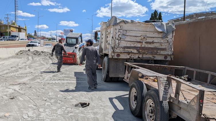 En una primera etapa, cuadrillas municipales retiraron el material con palas de mano, mientras que en una segunda fase utilizarán una pipa con agua a presión para eliminar los residuos de polvo y evitar riesgos adicionales a los conductores.