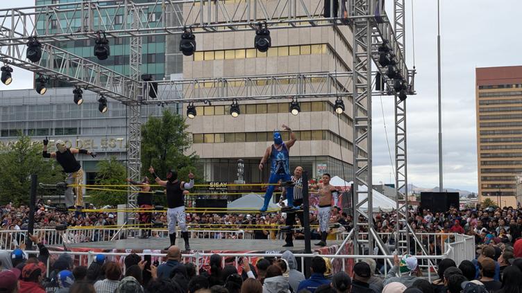 El alcalde de Ciudad Juárez, Cruz Pérez Cuéllar, acudió este domingo al Centro de la capital para presenciar una función de lucha libre realizada en la Plaza de Armas de Chihuahua, frente a la Presidencia Municipal.