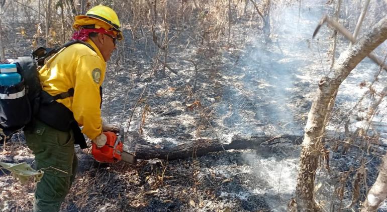 Este fuego se ubica en el Ejido San Alonso (Mesa Redonda), el cual tenía una superficie preliminar de tres hectáreas aproximadamente.