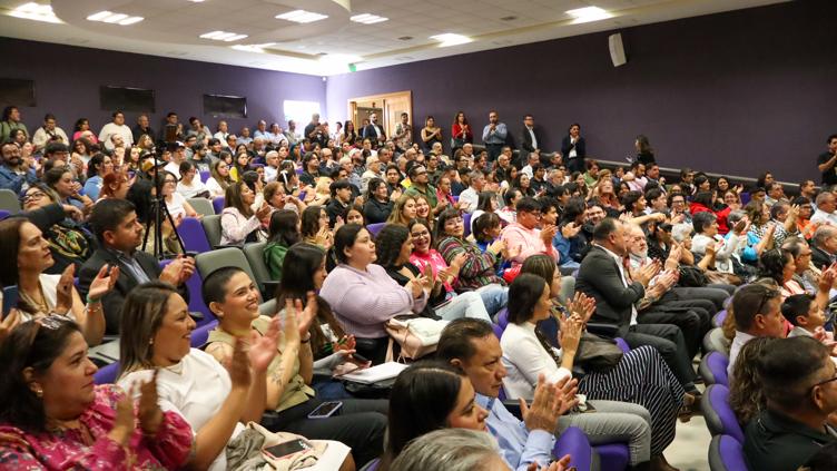 El periodista Martín Zermeño presentó su libro “Reprensar el 85”, con el Poliforum de la Facultad de Filosofía y Letras de la Universidad Autónoma de Chihuahua, lleno totalmente. A este evento asistieron políticos, alumnos y docentes de dicha facultad.