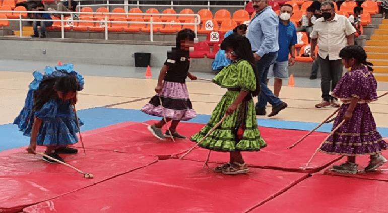 37 niñas, niños y jóvenes de las comunidades indígenas urbanas Pájaro Azul y Carlos Arroyo, participaron en el encuentro de “Juegos y Deportes Autóctonos” en las instalaciones del Gimnasio del Deporte Adaptado del Instituto Municipal de Cultura Física y Deporte.