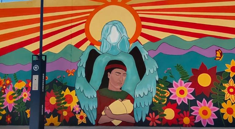 La obra realizada por el alumnado transmite mensajes de no violencia hacia la mujer, así como valores de esperanza, protección, libertad y fortaleza. Entre los elementos plasmados destacan flores, mariposas, la figura de una mujer rarámuri con su bebé y un ángel, símbolos que evocan cuidado y tranquilidad.