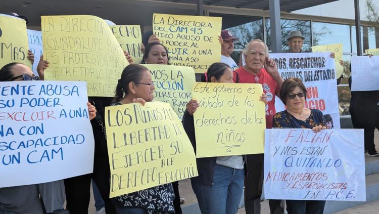 La mañana de este miércoles, padres de familia del Centro de Atención Múltiple (CAM) 43 se manifestaron nuevamente a las afueras de las oficinas gubernamentales ubicadas en el módulo de Pueblito Mexicano, para exigir la destitución de la directora Guadalupe Ramos González, a quien señalan por presunta exclusión de una alumna con discapacidad.