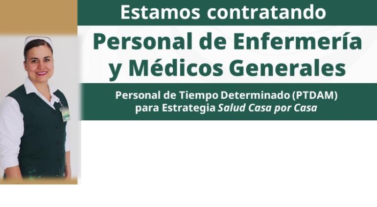El IMSS en Chihuahua anunció que tendrá contrataciones temporales para médico general y personal de enfermería para el programa “Estrategia Salud Casa por Casa”.
