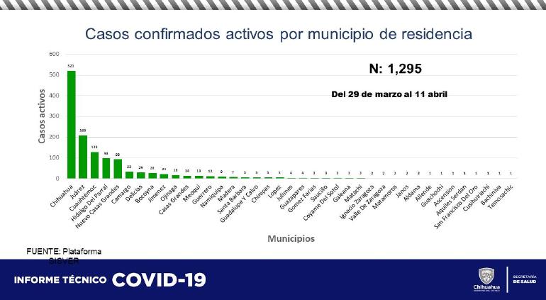 En todo el estado son 1 mil 295 pacientes con casos activos de COVID-19 confirmado por prueba PCR hasta el 11 de abril.