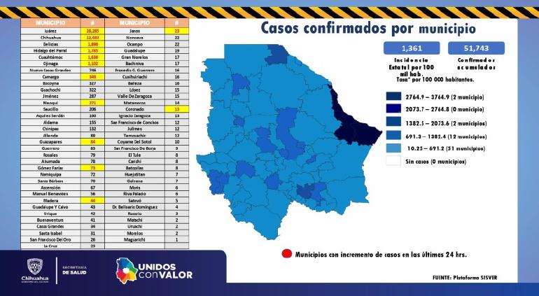 Nuevamente la capital fue el municipio más golpeado del día, situación que se ha mantenido en el último par de semanas, incluso por encima de Ciudad Juárez.