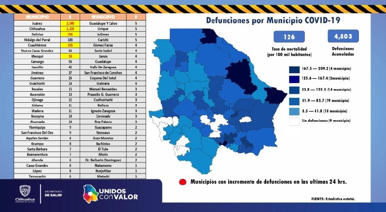 En el último día confirmaron 121 casos y 11 muertes en todo el estado. La ciudad de Chihuahua aportó la mitad de fallecimientos y más del 60% de positivos nuevos.