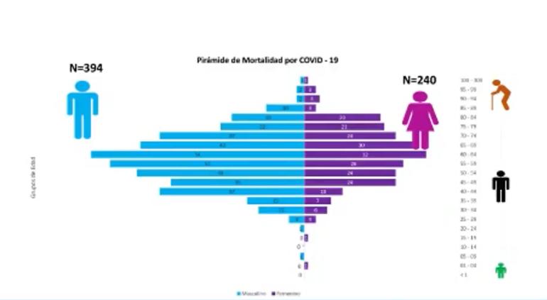 Pirámide de muertos por coronavirus - Mayores registros en hombres y en mayores.
