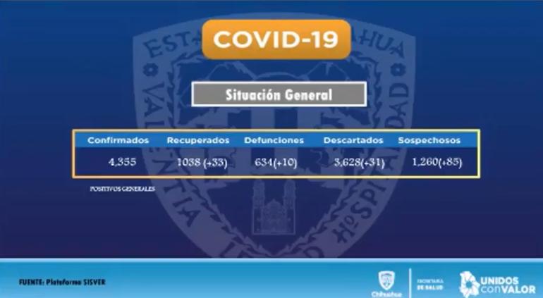 La Secretaría de Salud del Estado de Chihuahua informó las cifras actualizadas de Covid-19 en la entidad con 10 muertes y 56 casos nuevos confirmados en el último día.