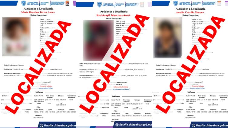 Elementos de la Fiscalía Especializada en Atención a Mujeres Víctimas del Delito por Razones de Género y a la Familia (FEM), en coordinación con la Agencia Estatal de Investigación, localizaron sanas y salvas a tres adolescentes que contaban con reporte de ausencia en Chihuahua.