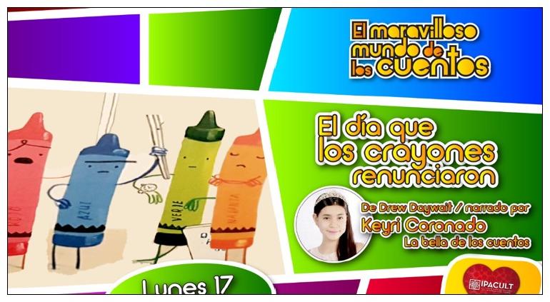 Como parte de “El Maravilloso Mundo de los Cuentos” implementado por el IPACULT, hoy podrás disfrutar del cuento "El día que los crayones renunciaron", a través de transmisión de Facebook.