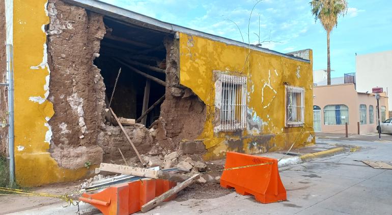 Esta mañana se reportó el derrumbe de un inmueble ubicado en la calle Cuarta y Allende, del Centro de la ciudad de Chihuahua.