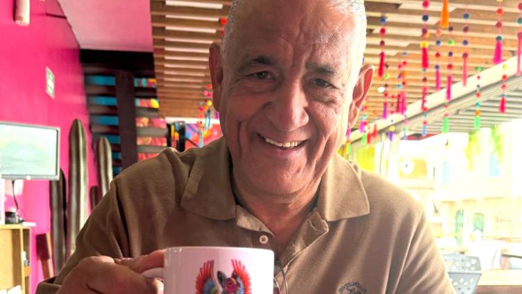 El conductor Juan Enrique López Aguirre se aventó "grilla" matutina, café en mano, presumiendo su tasa exclusiva.