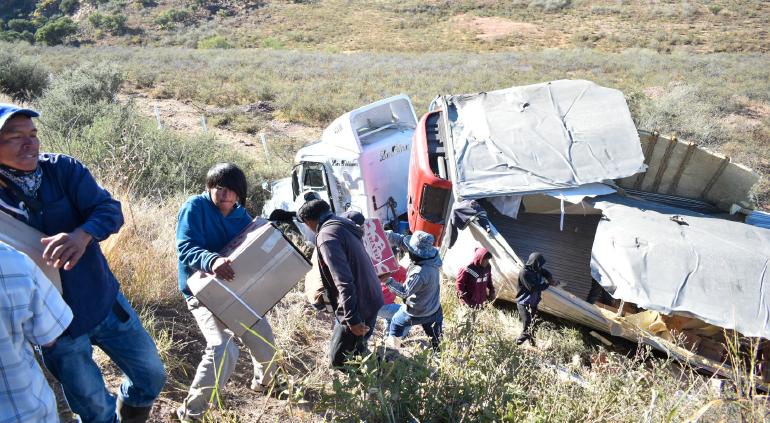 Un tráiler cargado con manzana desbarrancó a la altura del kilómetro 44 de la carretera Cuauhtémoc- Chihuahua. El conductor resultó con algunas lesiones.