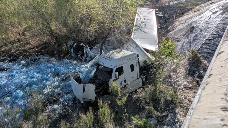 Un tráiler de Nazerca con número económico 07-BA-5N cargado con agua embotellada salió del libramiento Oriente en el km 20+200 y cayó al Río Chuviscar; el chofer de 55 años quedó dormido y sufrió golpes leves.